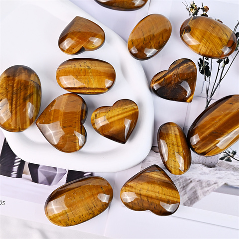 คริสตัลรูปหัวใจสำหรับการรักษาหินคริสตัลสำหรับงานฝีมือหินพลังงานจากยาทาเล็บสีเหลืองตาเสือ